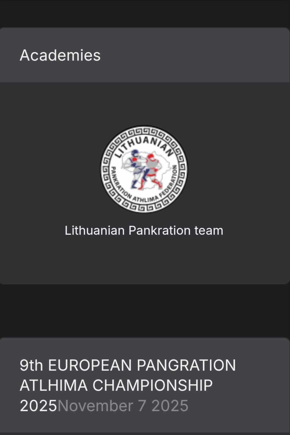 Sveikiname 8 klasės mokinį Mustafa Erdem Dogan, kuris lapkričio 7-9 d. dalyvavo Europos Pankration čempionate Graikijoje. Atstovaudamas Lietuvos komandą jis kovojo Kikbokso, Laisvų imtynių ir MMA taisyklių rungtyse. Priešininkai buvo stiprūs iš įvairių Europos šalių, bet Mustafa nenusileido.