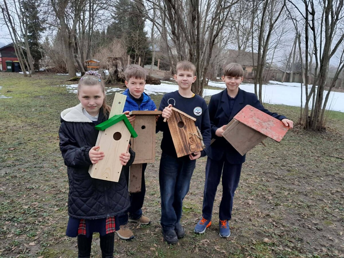 Dėkojame visoms klasėms atsiliepusioms į geografijos mokytojos Sigitos Breslavskienės kvietimą, atnujinti -papildyti mokyklos teritoriją paukščių namais-inkilais.