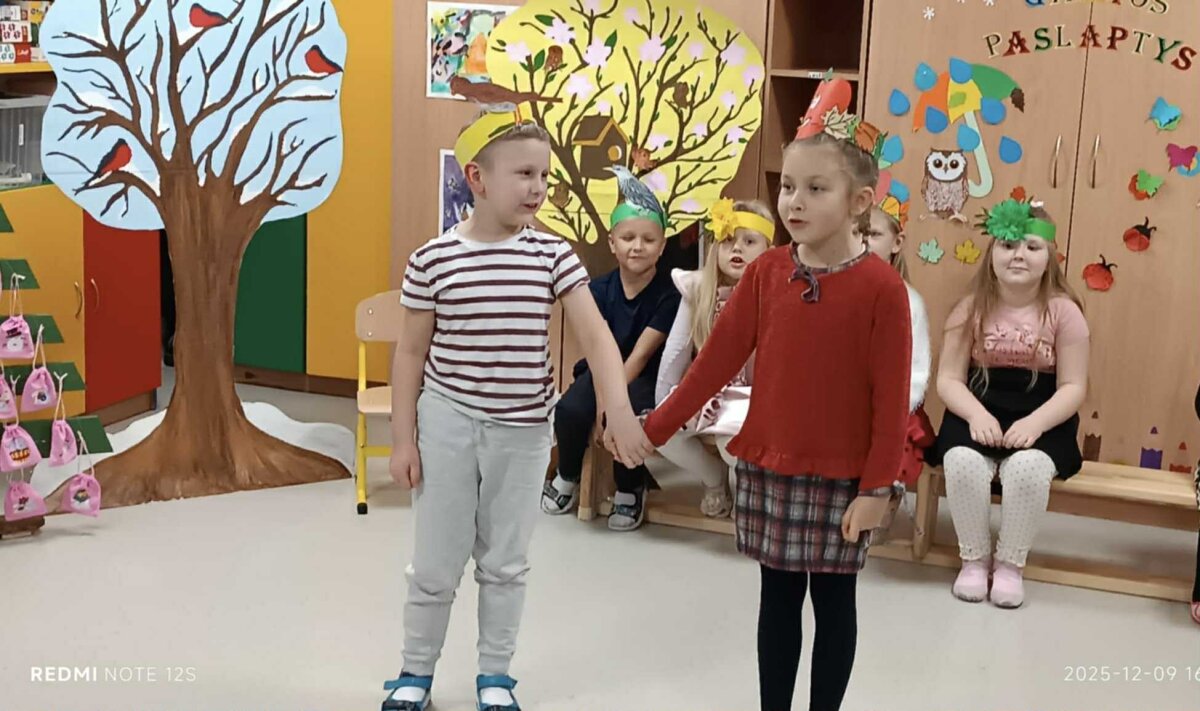 Renginio tikslas – įtvirtinti savaitinių temų žinias apie metų laikus – buvo įgyvendintas kūrybiškai ir žaismingai.