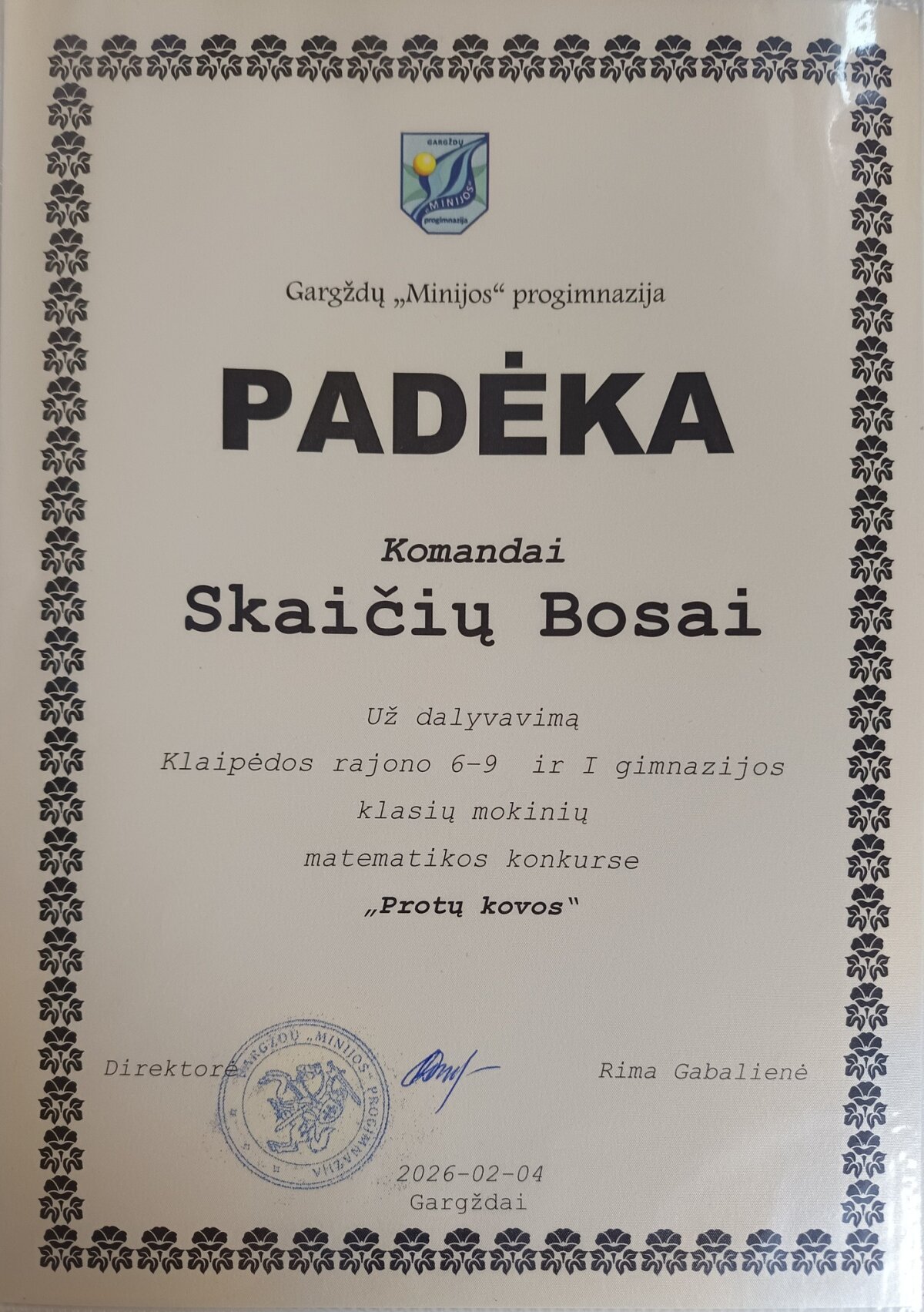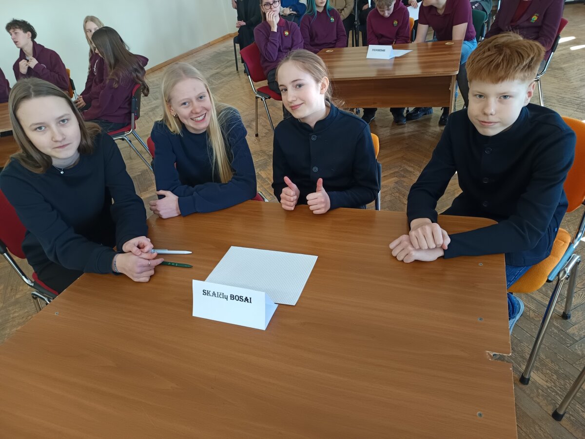Vasario pradžioje 6–7 klasių mokiniai dalyvavo komandiniame matematikos konkurse „Protų kovos“, vykusiame Gargždų „Minijos“ progimnazijoje. Į konkursą susirinko net dešimt komandų iš viso rajono. Skirtingai nei įprastose olimpiadose, čia svarbiausia buvo ne individualūs gebėjimai, o gebėjimas dirbti komandoje . Mokiniai kartu ieškojo sprendimų sudėtingoms užduotims – nuo klasikinių lygčių iki nestandartinių loginių galvosūkių, reikalaujančių kūrybiškumo ir drąsos „išlipti iš rėmų“. Dalyviai dar kartą įsitikino, kad matematika gali būti ne tik rimtas mokslas, bet ir azartiškas, bendram tikslui vienijantis žaidimas. Mokinius ruošė matematikos mokytojos A. Naujokienė bei I. Bodnarčiukienė.
