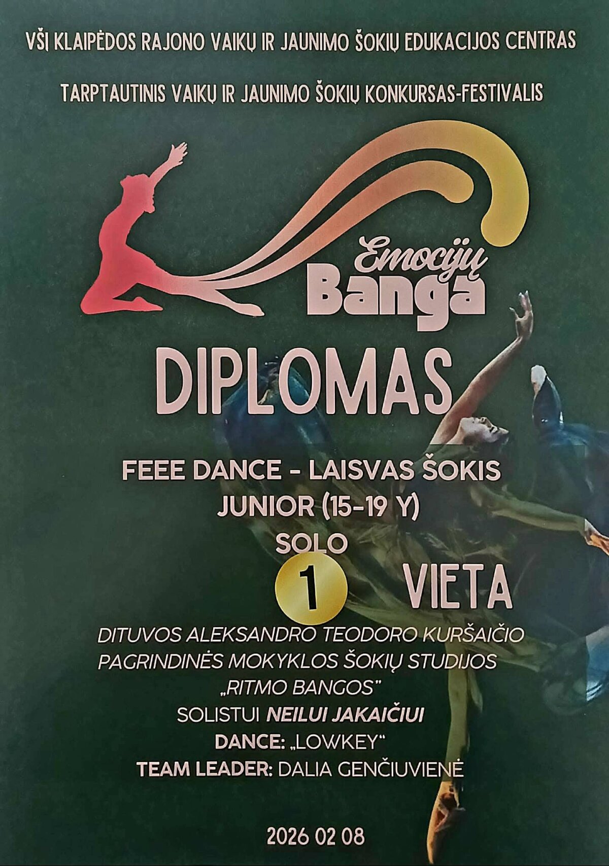 Šokių konkursas-festivalis ,,Emocijų banga". Pirmos vietos!